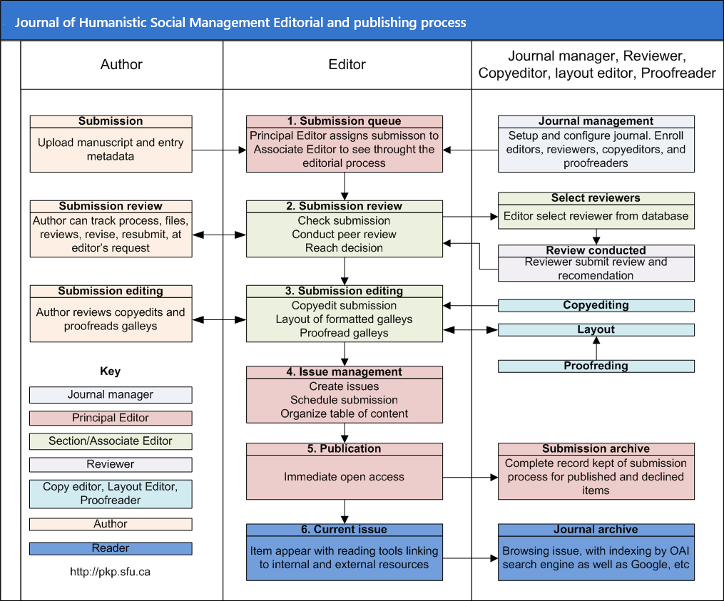 Journal of Humanistic Social Management follow the editorial and publishing process set by PKP, as presented in the following figure.